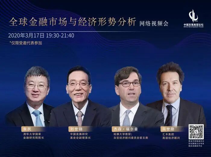 2020年3月17日晚,中国发展高层论坛发起召开“全球金融市场与经济形势分析”网络视频会。会议邀请中、美、欧专家就疫情之下中、美、欧金融市场、经济形势及应对策略作出判断。