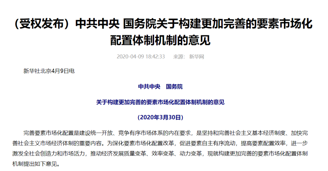 导读:4月9日晚间,中央、国务院放大招了!出了一份文件《中共中央、国务院关于构建更加完善的要素市场化配置体制机制的意见》。其中涉及到股市、债市、存贷款基准利率、人民币汇率、还有放开放宽城市落户的相关政策,信息量超级大。