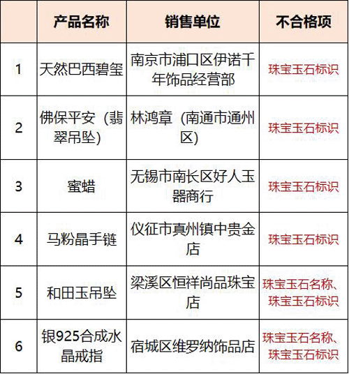 6月4日,江苏市场监管局发布《2020年1季度珠宝玉石产品质量监督抽查通报》。