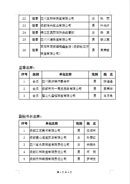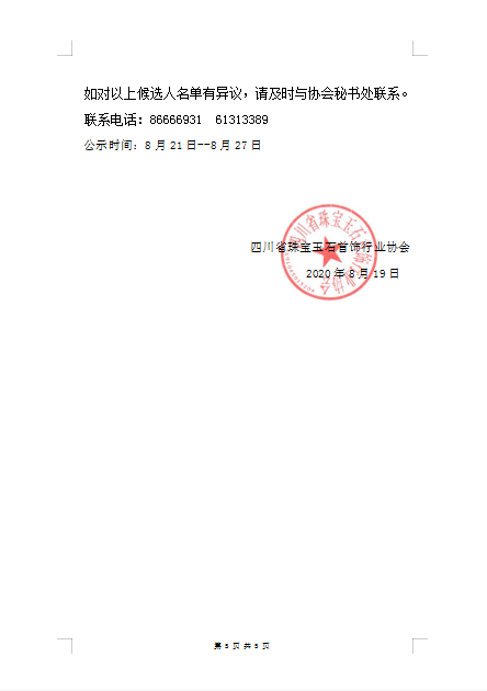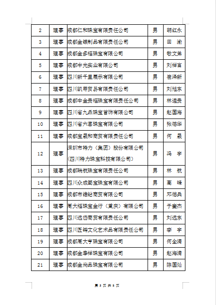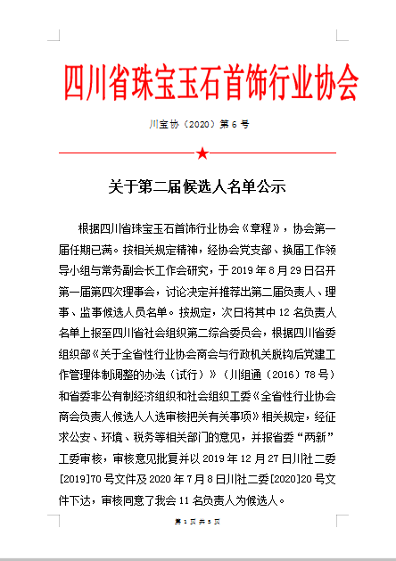 四川省珠宝玉石首饰行业协会关于第二届候选人名单公示