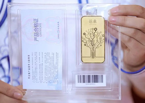 2020年9月,成都诞生了中国第一块区块链实物黄金“芯承·传承金”。