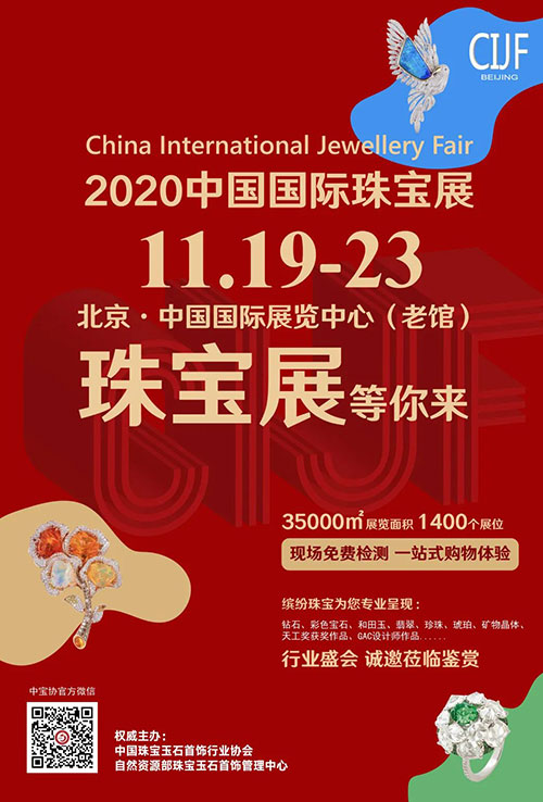 2020中国国际珠宝展将于11月19日—23日在中国国际展览中心(老馆)盛大开幕!本届展览由中国珠宝玉石首饰行业协会和自然资源部珠宝玉石首饰管理中心两大权威机构联合主办,总面积达35,000平方米,展位数量1400个,将汇聚近千家珠宝制造商、批发商、零售商和加盟商,集中展示行业发展新动态、新趋势、新产品、新技术,构建一个高效、全面、可靠的行业交流沟通和贸易合作的平台!