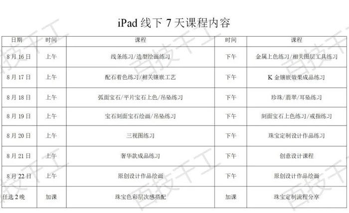正常授课之外,准备了临摹课程,帮助大家完整的一步步绘画出珠宝作品