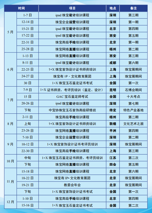 中宝协2021年教育培训活动表