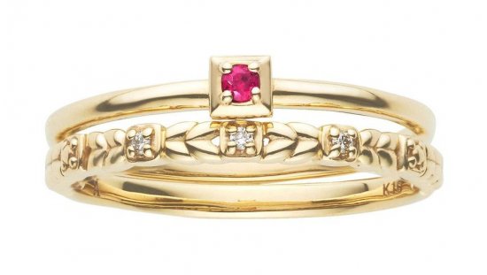 镶嵌1颗圆形切割红宝石,点缀圆形切割钻石。
