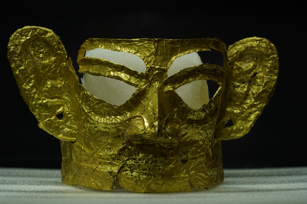 李新伟解释说:“古蜀遗址出土的许多文物都有太阳神鸟的形象,这显示出古人对于太阳的崇拜。黄金闪烁着太阳般熠耀的光芒,因此古人格外珍视黄金,并将其制成面具等圣器,借以同神灵沟通。”