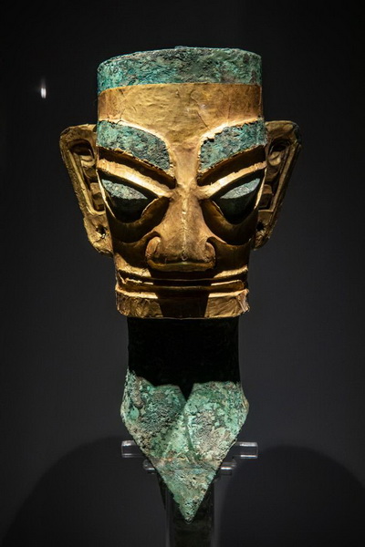 该面具是目前三星堆考古发掘出的最完整的一件金面具。新华社记者 张超群 摄