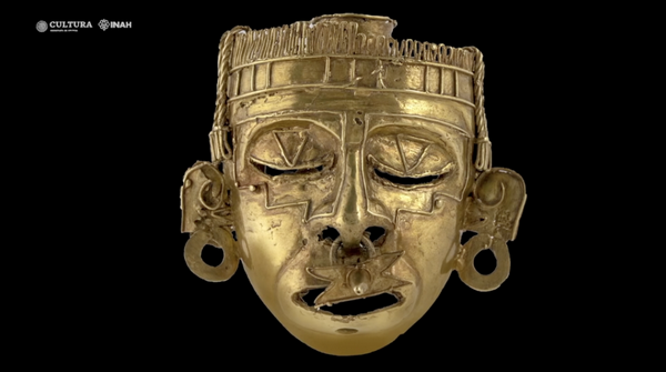 这是墨西哥瓦哈卡出土的希佩·托特克黄金面具。(墨西哥国家文物局提供)