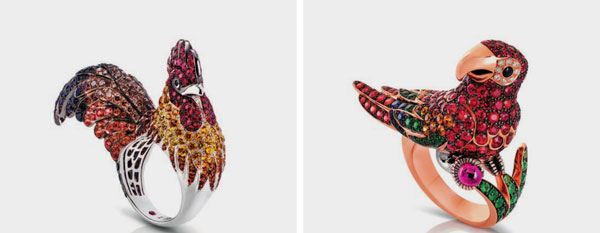 图左:ROBERTO COIN 多色蓝宝石、钻石的公鸡