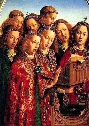 天使胸前散发明亮光芒的蓝宝石胸针,展示了中世纪时代蓝宝石在教会最尊崇的地位。