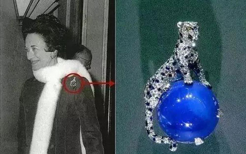 温莎公爵也曾选择蓝宝石作为爱的信物,那枚旷世闻名的“猎豹”胸针上就镶嵌了一颗稀有的152.35克拉的喀什米尔蓝宝石。这枚由钻石和蓝宝石共同守护的爱的礼物于1987年那场著名的苏富比拍卖会上以154万瑞士法郎被卡地亚购回。