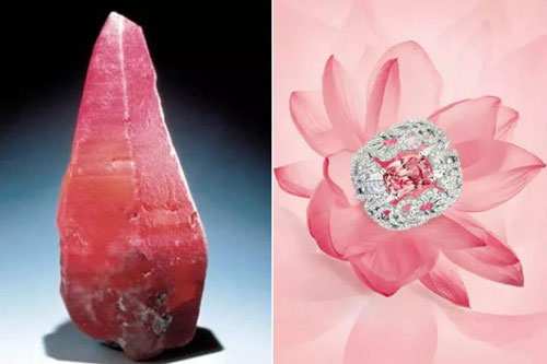 在非蓝色系的蓝宝石中,有一种半橙半粉的蓝宝石叫做帕帕拉恰蓝宝石,多产自斯里兰卡。它的颜色是宗教信徒心中的神圣之色,因此帕帕拉恰也被称为莲花刚玉。顶级的帕帕拉恰色调是橙粉各占50%,它橙粉交融的色调,呈现出强烈的少女感,仿佛是落入人间的精灵。作为最美丽和最有价值的品种之一,它的产量只有红宝石产量的大概1%。因此,帕帕拉恰抓住了一大批消费者的眼球,受到了很多资深宝石藏家的喜爱。