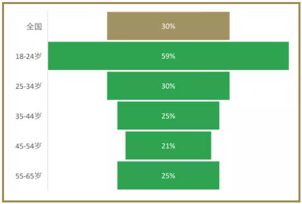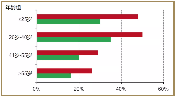按年龄段:从未购买过金饰且具有金饰购买意向的中国消费者