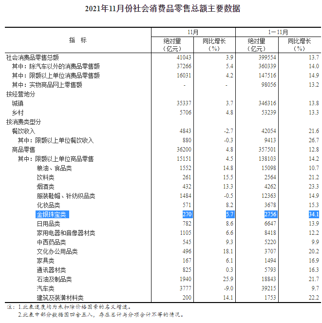 原标题:2021年11月份社会消费品零售总额增长3.9%