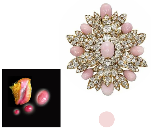 海螺珠是一种海螺孕育出来的珍珠,它主要有两个品种,即孔克珠和美乐珠。海螺珠的珍贵之处在于其无法被人工培育生产,且产量十分稀少,大约每5万只海螺里才能出产一颗海螺珠,其珍贵程度可见一斑。其中,孔克珠通常呈粉色,品质上乘的孔克珠表面有肉眼可见的“火焰纹”。很多珠宝大品牌会将海螺珠作为高级珠宝的主角,也有一些海螺珠设计作品在拍卖会上被拍出天价。因此,海螺珠真的算得上是珍珠界的“顶流”。