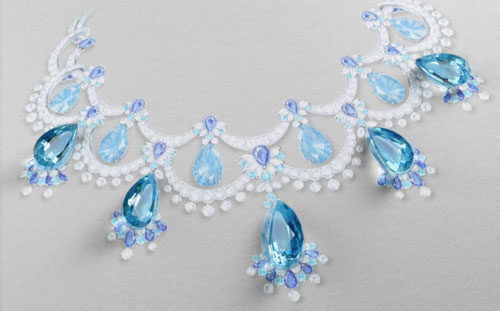 海蓝宝石是很多国际珠宝品牌的主流镶嵌用石,如 Bvlgari(宝格丽), Cartier(卡地亚),Dior(迪奥),Tiffany(蒂芙尼), Van Cleef & Arpels(梵克雅宝)等。尤其是能够达到圣玛利亚蓝色的优质海蓝宝石,在拍卖场上的身价也是与日俱增。