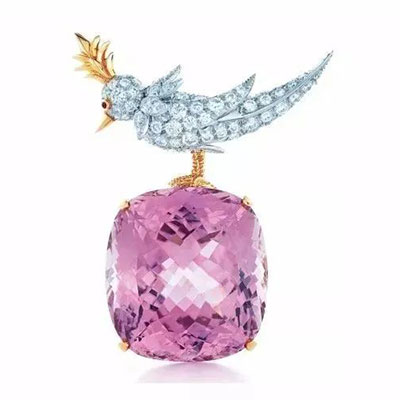 蒂芙尼紫锂辉石“石上鸟”胸针