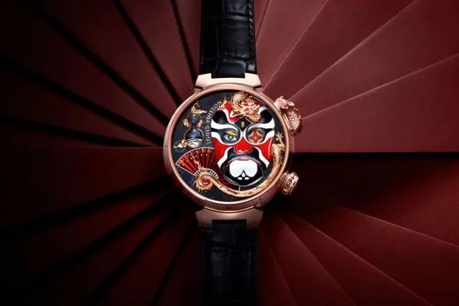 路易威登(Louis Vuitton)推出川剧变脸主题腕表 近日路易威登(Louis Vuitton)宣布推出“Tambour Opera”全新动偶腕表系列,表盘以川剧脸谱做装饰,并可随佩戴者挥手动作转换脸谱面貌,呈现出精妙的微型戏剧。