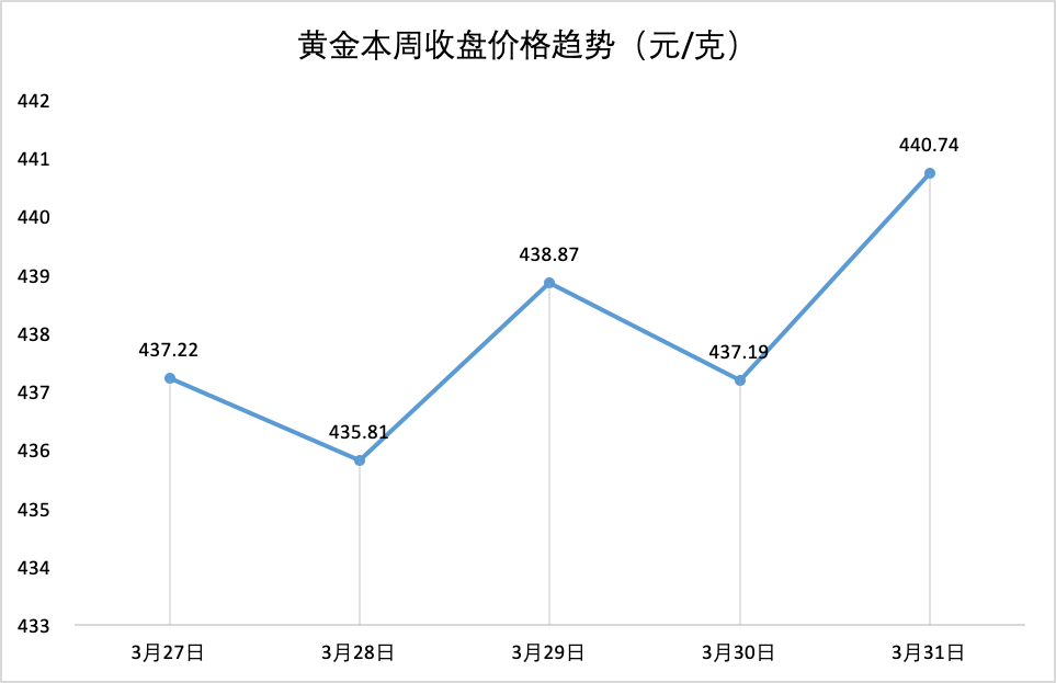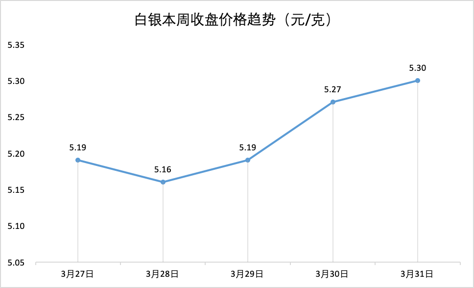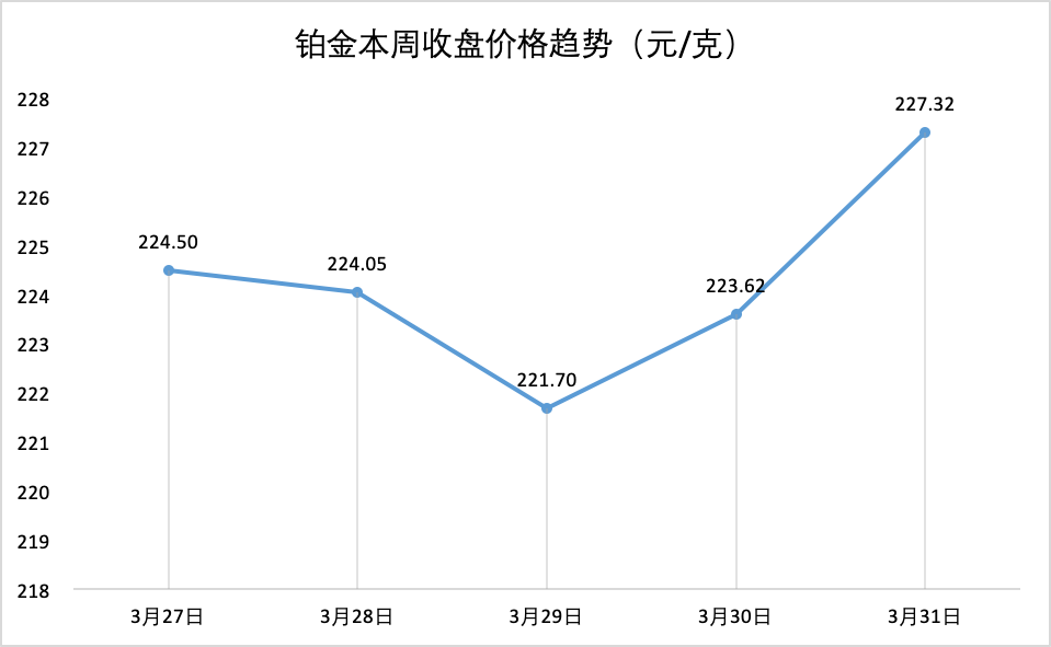 钟表与珠宝2030倡议组织增加合作伙伴 近日,钟表与珠宝2030倡议组织(WJI 2030)宣布与全球时尚议程(GFA,下同)结成联盟,共同应对社会与环境等议题和挑战。全球时尚议程是一家时尚行业非营利组织,旨在促进行业在可持续发展方面的合作。今年6月27日,全球时尚议程将于哥本哈根举办全球时尚峰会,届时双方将披露更多关于其联盟的合作细节,以更好地推动时尚行业的可持续发展转型。 原材料价格一周走势 特别说明: 1、数据来源于上海黄金交易所; 2、3月31日数据为当天15:30的收盘价; 3、黄金、白银、铂金价格分别对应Au99.99、Ag(T+D)、Pt99.95的交易数据。 *文章图片部分来源于网络,如有侵权请告知删除。