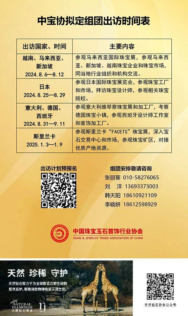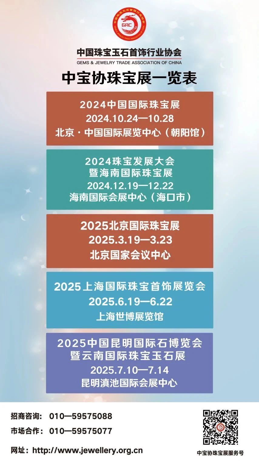 2024昆明石博会正式举办 7月11—15日,由云南省康旅控股集团有限公司主办,中国珠宝玉石首饰行业协会指导,昆明国际会展中心有限公司、中宝协(北京)展览有限公司联合承办的2024中国昆明国际石博览会暨云南国际珠宝玉石展于昆明滇池国际会展中心举办。本次博览会展览面积达5.3万平方米,设置超2,000个标准展位,共有来自国内外30多家商协会展团的200多家知名企业参展。 创辉珠宝2024财年利润显著增长 近日,创辉珠宝发布了2024财年年报。报告期内公司营业收入同比增长4.0%至1.42亿港元,其中宝石镶嵌珠宝收入同比下降8.5%至5,546万港元,黄金珠宝收入同比下降3.9%至5,239万港元,回收黄金贸易收入同比增长58.5%至3,442万港元;毛利同比增长22.1%至3,918万港元,股东应占溢利同比增长173.36%至159万港元。 明牌珠宝发布上半年业绩预告 近日,明牌珠宝公布了2024年上半年业绩预告,预计报告期内归母净利润为1,200万—1,800万元,同比下降73.5%—82.3%;扣非净利润为200万—800万元,同比下降85.2%—96.3%。公司表示珠宝首饰主业保持平稳发展,业绩下降主要原因为光伏电池产品市场价格下降导致全资子公司浙江日月光能科技有限公司净利润亏损。 国际动态