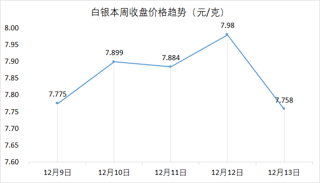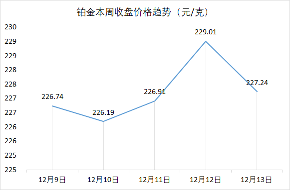香奈儿时尚总裁表示奢侈品消费人群缩窄 近日,香奈儿时尚总裁Bruno Pavlovsky在采访中表示,由于欧美持续的通胀削弱了消费者的购买力,奢侈品消费者数量正在下降,奢侈品品牌持续的高速增长或将放缓。随着奢侈品市场进入成熟阶段,市场需求更依赖于品牌忠诚度和长期价值。 投融资 路威酩轩(LVMH)投资箱包品牌“Db” 近日,挪威箱包品牌“Db”宣布其获得了来自路威酩轩奢侈品风投基金(LVMH Luxury Ventures)的股权投资,“Db”将使用该笔资金加速全球扩张,并重点布局美国和亚洲市场。“Db”于2012年创立,以北欧简约设计风格著称,专注于满足城市和户外冒险家的需求。 原材料价格一周走势 特别说明: 1.数据来源于上海黄金交易所; 2.黄金、白银、铂金价格分别对应Au99.99、Ag(T+D)、Pt99.95的每日收盘价; 3.12月13日数据为17:00最新价格。 【声明】文章图片部分来源于网络,如有侵权请告知删除。