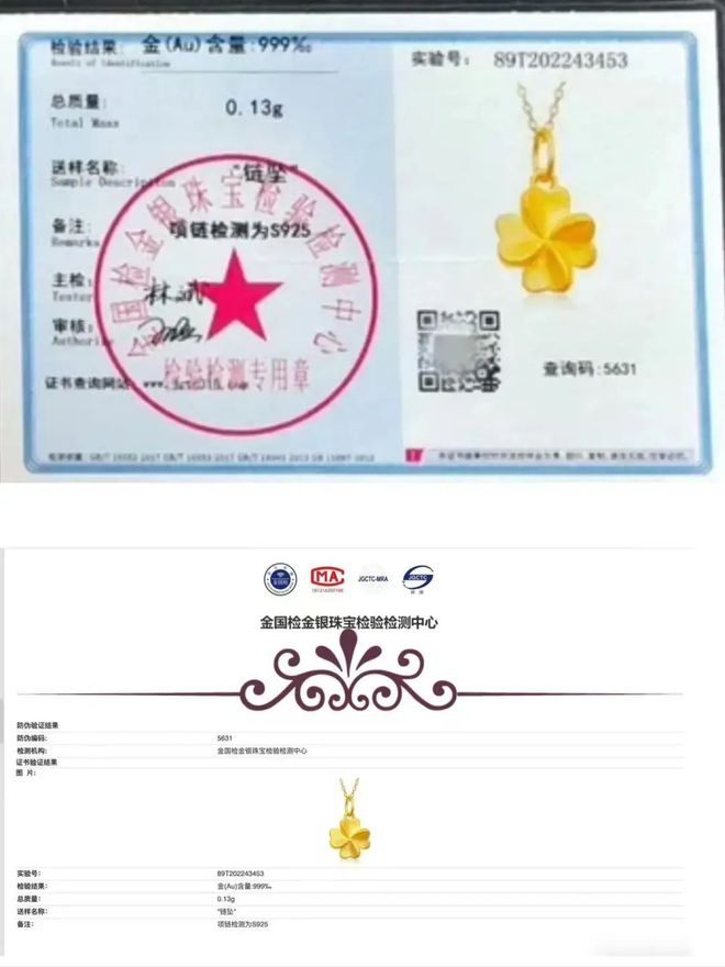 商家展示的一张鉴定证书中,显示为莆田金国检金银珠宝检验检测中心,该机构在今年年初因出具虚假检测报告被福建省市场监管部门调查处理。