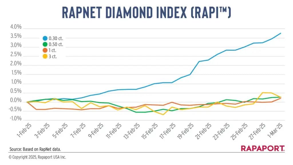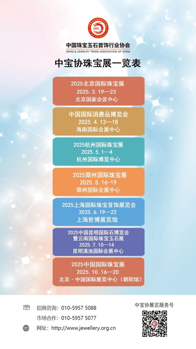 第五届中国国际消费品博览会线上报名通道开启 3月3日,第五届中国国际消费品博览会网站启动线上报名,面向参展及观展单位、个人开放注册。其中,参展证注册范围包括独立参展商及省市区展团,观展证注册范围包括省市区交易团及特邀采购商。据报道,本届消博会目前各项筹备工作进展顺利,并呈现出参展国别和地区更加多元、全球头部企业更加集聚、国货潮品更加精彩、精品和新品更加丰富、系列活动更加多元5大特点。 第41届香港国际珠宝展正式开幕 3月4日,第41届香港国际珠宝展在香港特区香港会议展览中心开幕,中国珠宝玉石首饰行业协会作为参展商于展会精彩亮相。本届珠宝展连同已开展的第11届香港国际钻石、宝石及珍珠展,共开放18个不同国家、地区和行业的主题展馆,来自全球40多个国家和地区的约4,000家展商参展,并首次设立新晋珠宝设计师专区,向全球买家展示年轻设计师的创作艺术与技艺水平。 广东省珠宝玉石交易中心首届翡翠玉石交易会(四会)开幕 3月4日,广东省珠宝玉石交易中心第一届翡翠玉石交易会(四会)在四会市缅格拉标场正式启幕,交易会为期6天,3月4—6日为看货日,3月7—9日为开标日。本届交易会旨在构建翡翠玉石阳光化交易体系,推动产业链创新链文化链人才链深度融合,赋能四会珠宝玉器产业高质量发展。 周大生开展黄金租赁业务 近日,公司董事会会议审议通过了《关于2025年度开展黄金租赁业务的议案》,将使用银行授信额度开展黄金租赁业务,本年度开展黄金租赁业务交易最高额度不超过5,000公斤,交易额度可在授权期间内滚动使用;单笔黄金租赁业务不超过12个月,黄金租赁的费率不超过同期银行贷款基准利率。 国际动态