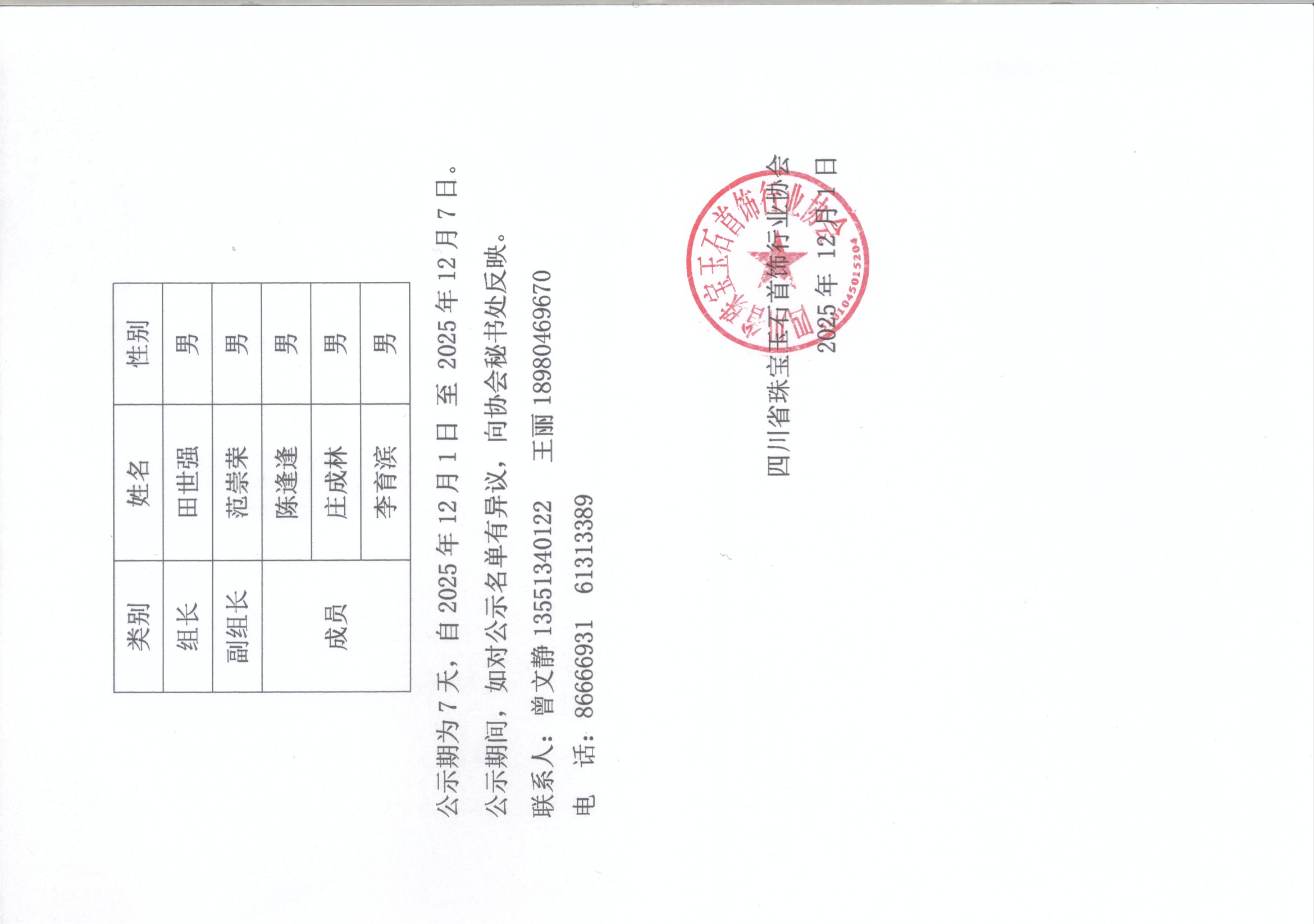 四川省珠宝玉石首饰行业协会关于换届工作领导小组名单公示